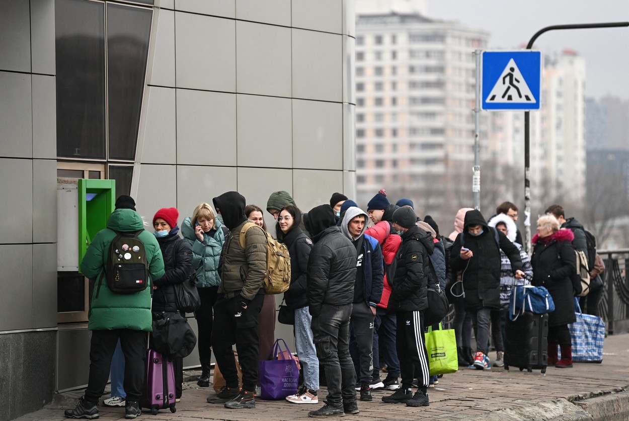 Coadă la un bancomat din Kiev. (Sursa foto: profimedia.ro)