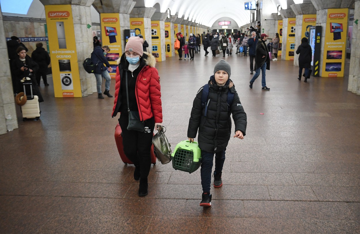 Oamenii au alergat la metrou, în dimineața zilei de 24 februarie. (Sursa foto: profimedia.ro)