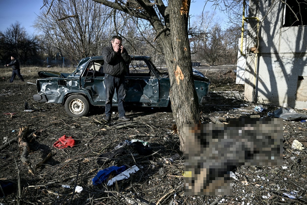 Bombardamentele asupra orașului Chuguiv, din estul Ucrainei, pe 24 februarie 2022, s-a lăsat cu victime. (Sursa foto: profimedia.ro)