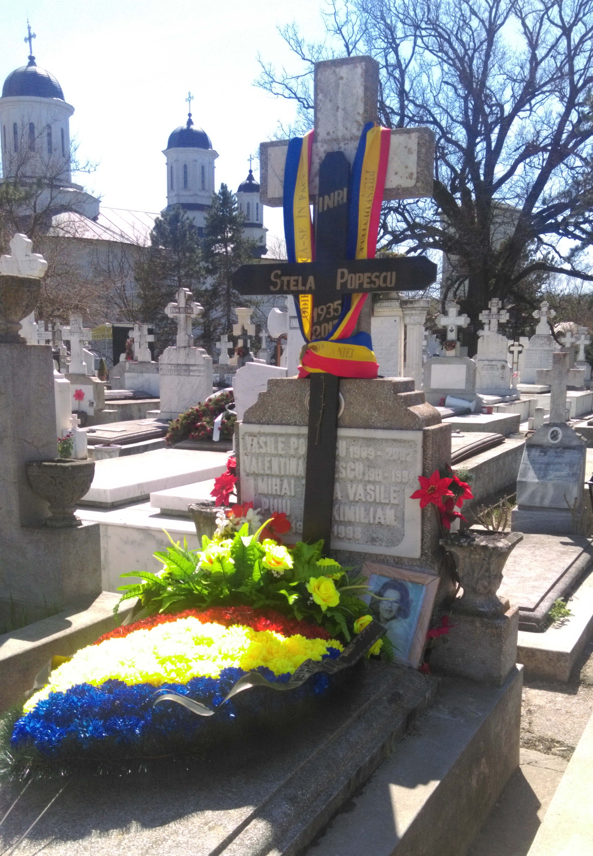 La mormântul Stelei Popescu este o coroană de flori, împreună cu steagul țării noastre, venite chiar de la președintele României, Klaus Iohannis