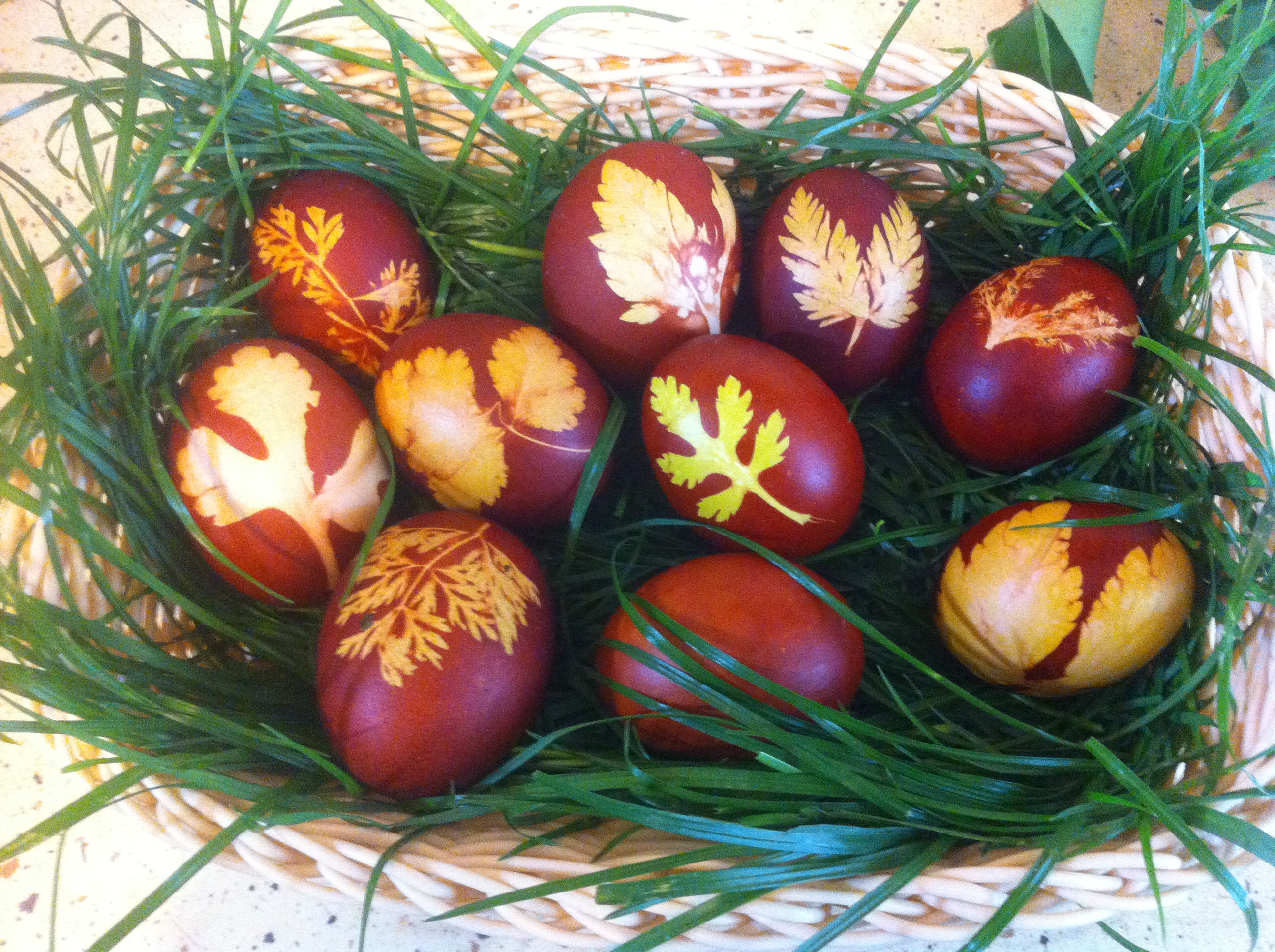 Ouă decorate cu frunze