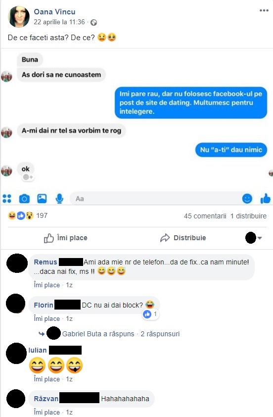“A-mi dai nr tel să vorbim”. Cum a încercat un fan să o “agațe” pe Oana de la Genius pe Facebook