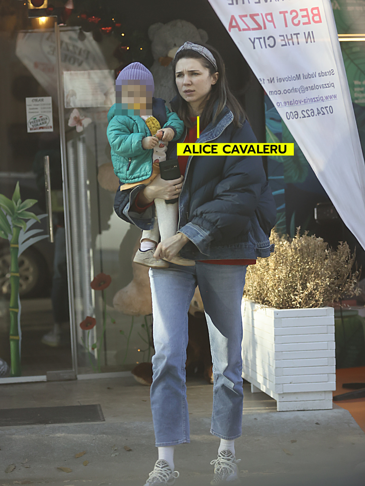 Alice Cavaleru pleacă de la restaurant ținând-o în brațe pe Alegra Nova (Foto: CANCAN.RO)