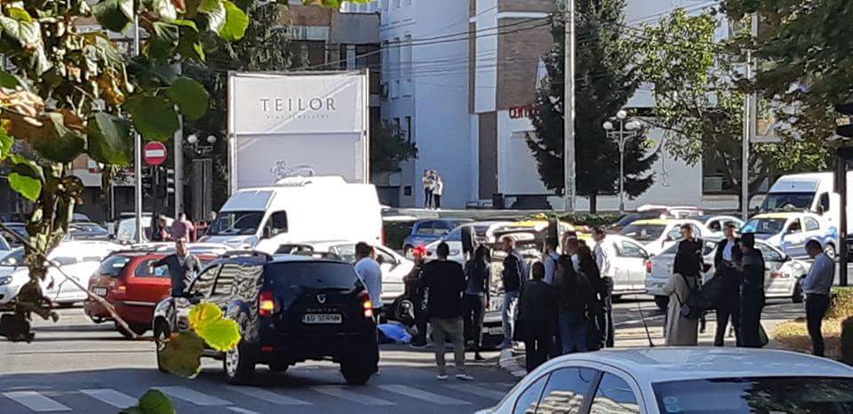 Mașina de poliție s-a răsturnat în urma impactului