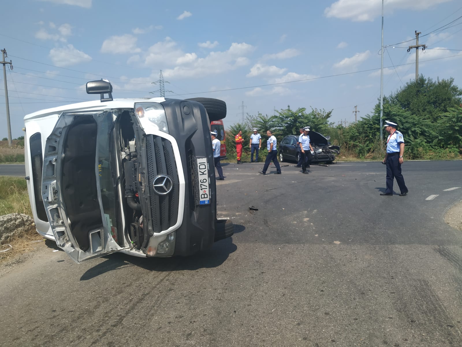 Un microbuz s-a răsturnat pe DJ 601 A, între localitățile Dragomirești Deal și Bâcu, județul Giurgiu