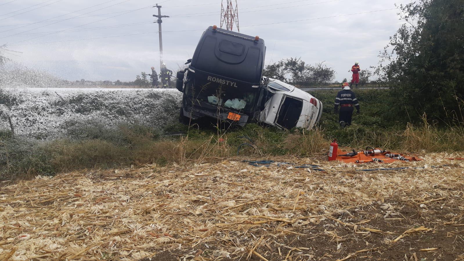 Accident grav în Prahova! O cisternă cu Kerosen s-a răsturnat peste un autoturism. A fost emisă o avertizare RO ALERT