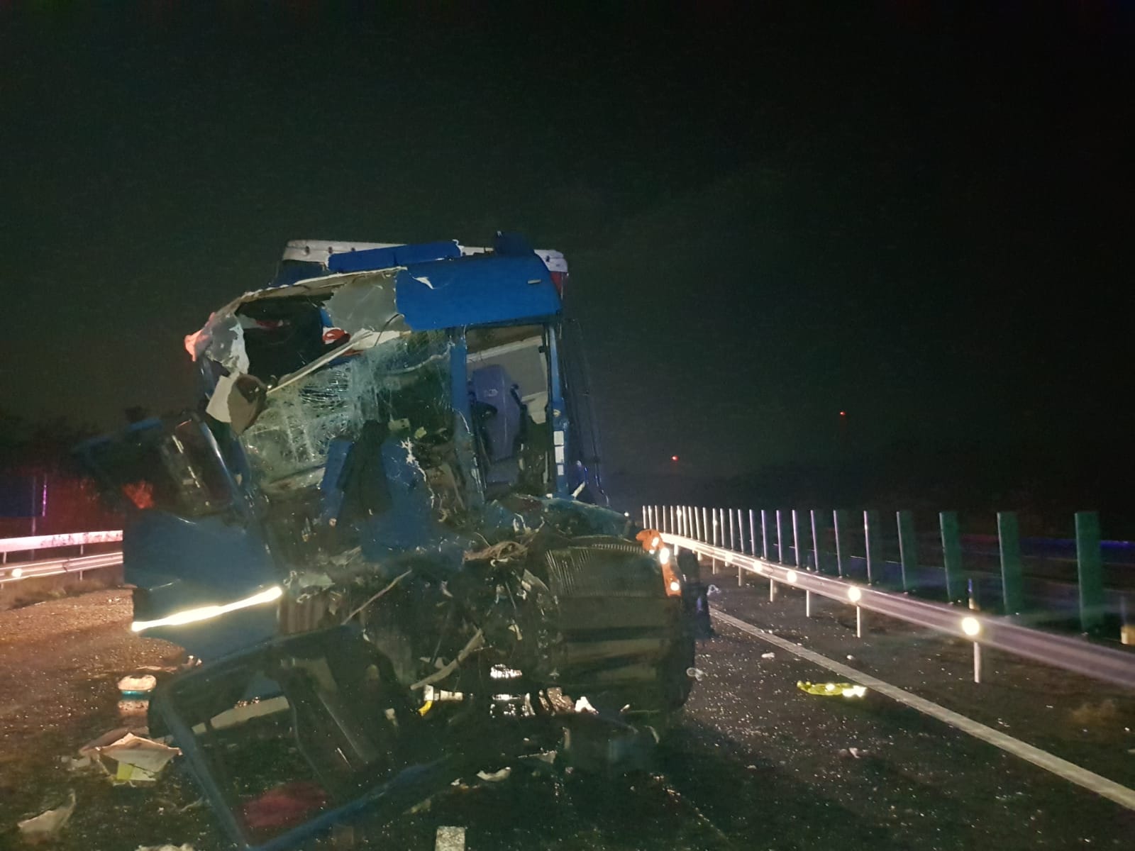Accident grav pe A1. Două camioane s-au ciocnit, iar unul dintre șoferi a rămas încarcerat
