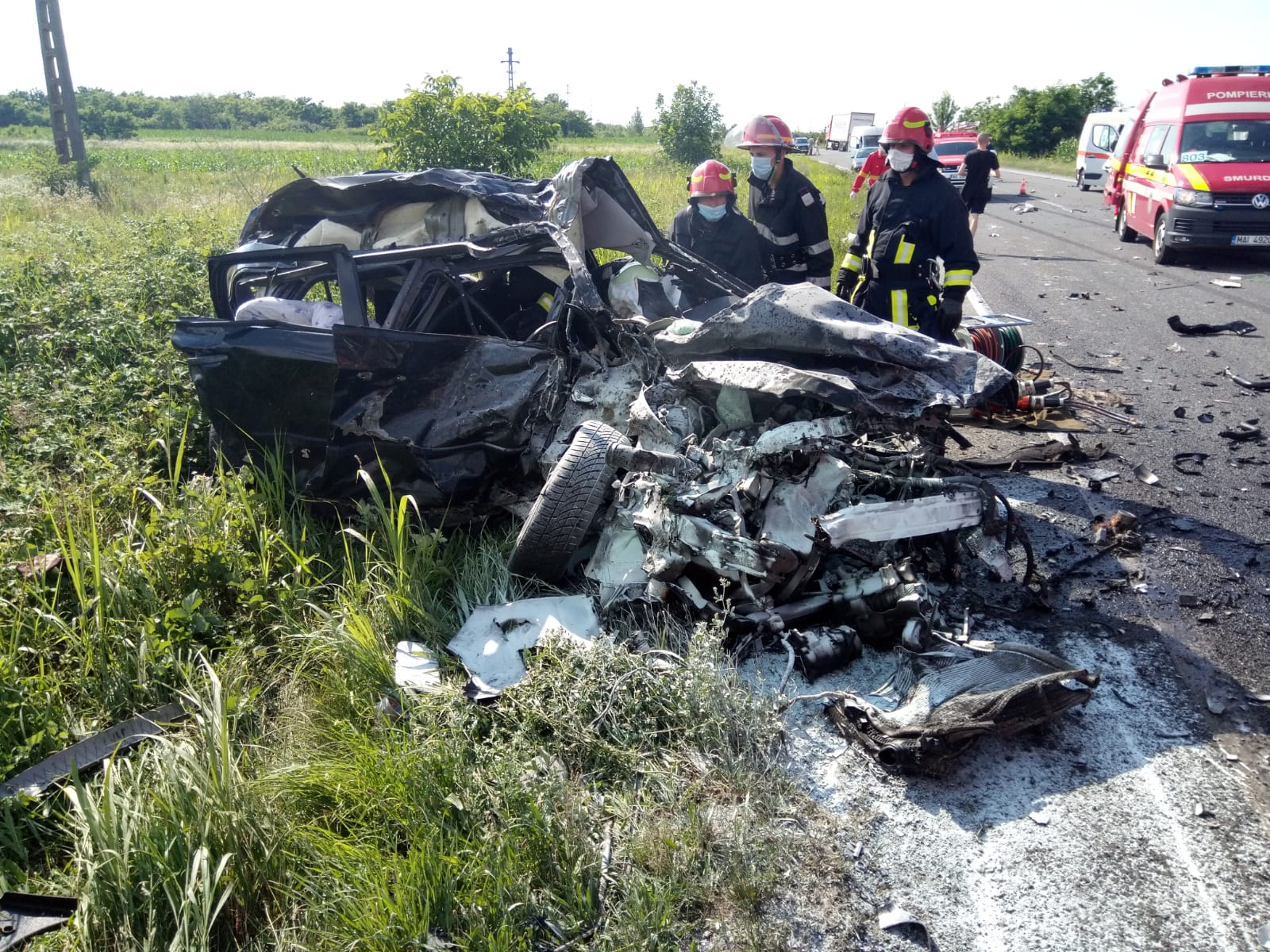 Accident horror între Lugoj şi Caransebeş. O persoană a murit strivită în mașină. FOTO