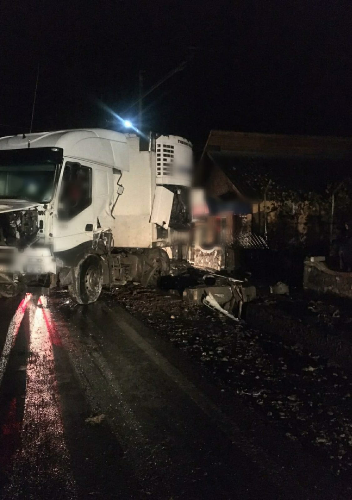 Accident teribil în Dâmbovița. Două tiruri s-au ciocnit și au rupt gardurile mai multor case
