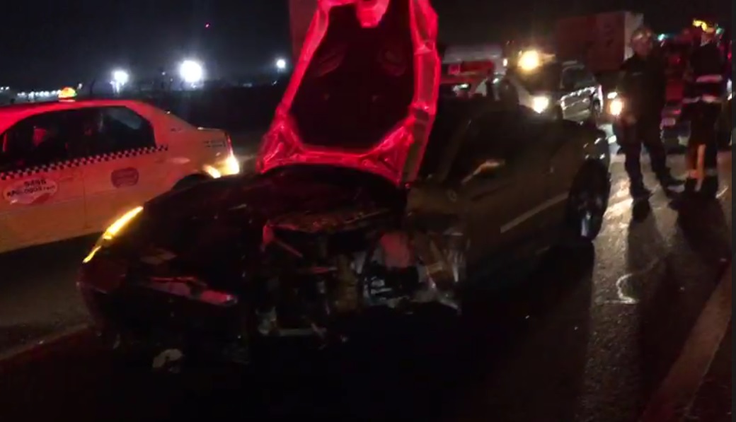 Accident în Capitală. Fiul unui bogătaș și-a distrus bolidul, iar o altă mașină a luat foc după impact