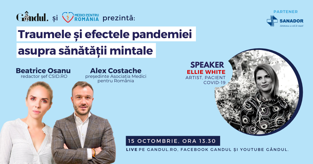 Află care sunt efectele statului în casă asupra psihicului și cum controlăm anxietatea pe timp de pandemie! Astăzi de la 13.30 în webinarul LIVE – Traumele și efectele pandemiei asupra sănătății mintale!