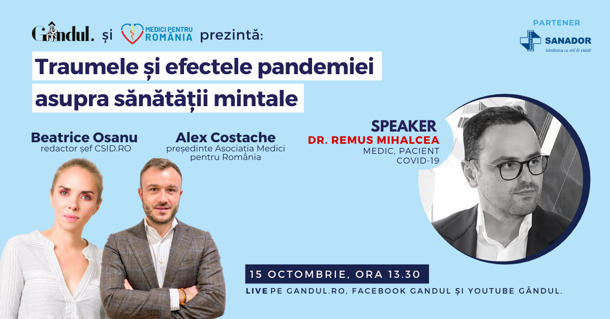 Află care sunt efectele statului în casă asupra psihicului și cum controlăm anxietatea pe timp de pandemie! Astăzi de la 13.30 în webinarul LIVE – Traumele și efectele pandemiei asupra sănătății mintale!