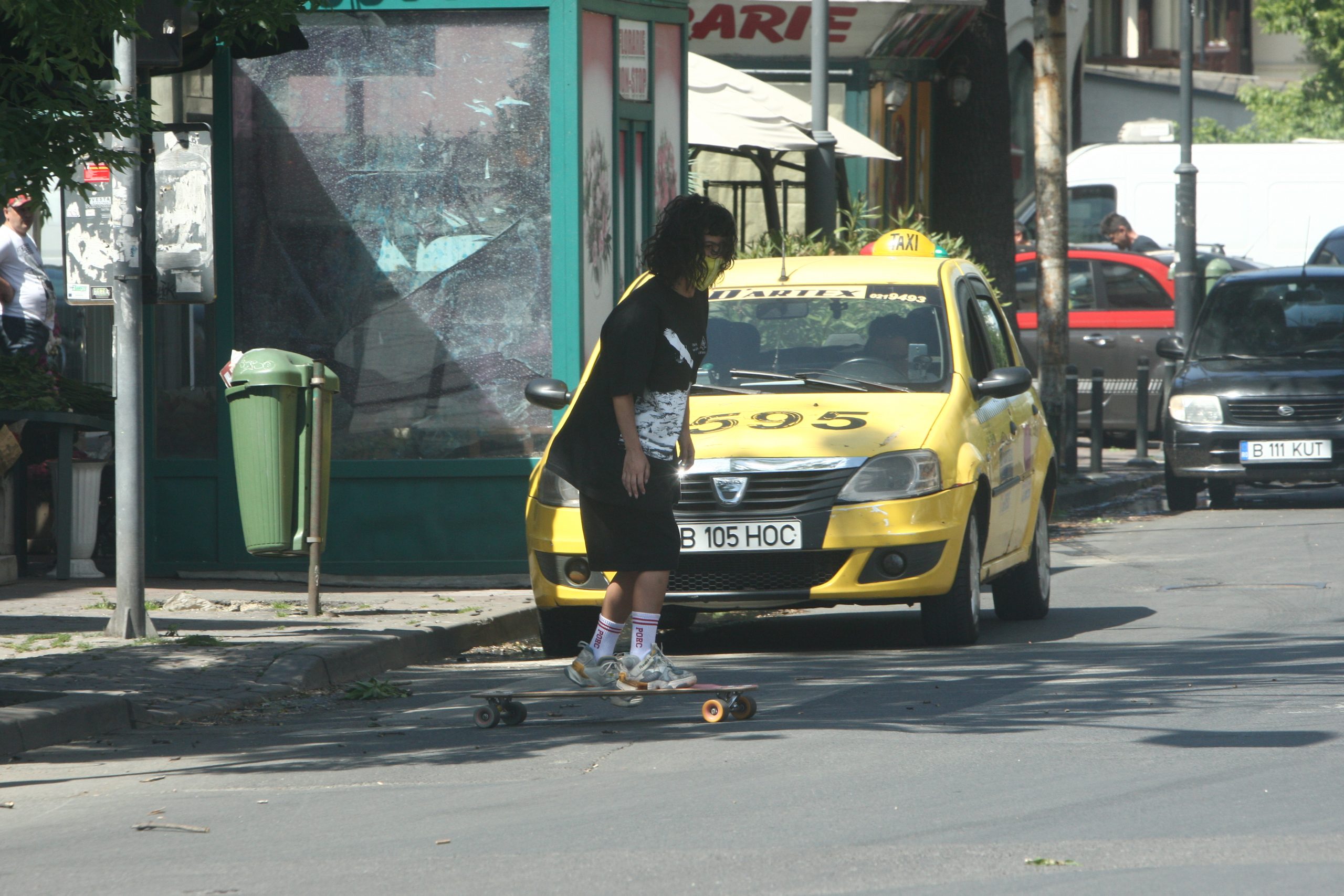Ai fi zis că e doar un puști cu părul lung, dar… Inna și-a luat viteză prin București, pe skateboard și…