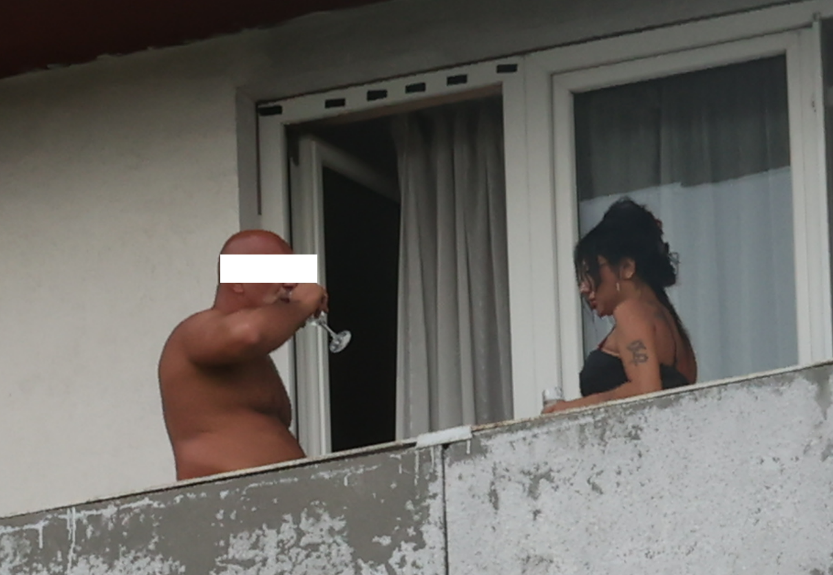 Ioana Popescu și soțul vedetei au ieșit pe balcon, la o țigară (Foto: CANCAN.RO)
