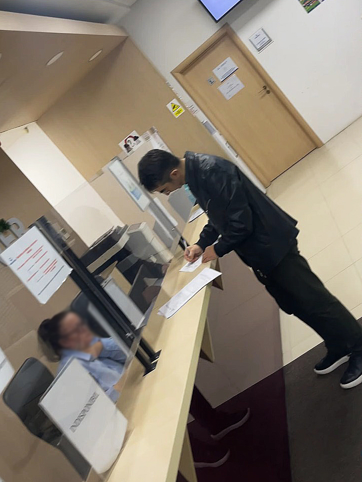 Semnează fișa ca mai apoi să intre la vizita medicală