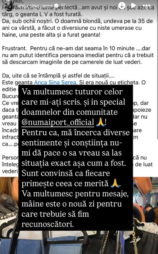 Postarea făcută de Anca Serea/ Sursa foto: Instagram