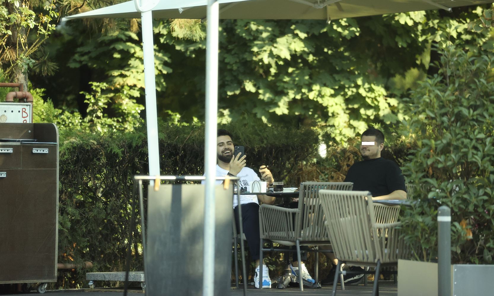 Alex Leonte și prietenul lui, la terasă (Foto: CANCAN.RO)