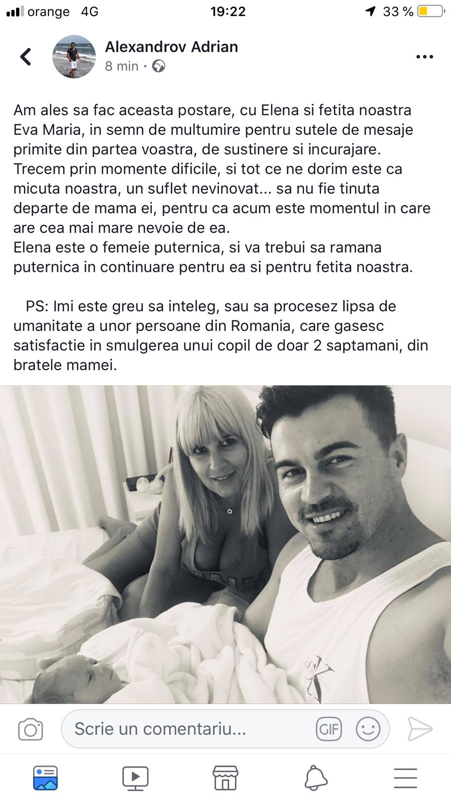 Alexandrov Adrian, iubitul Elenei Udrea, mesaj tulburător