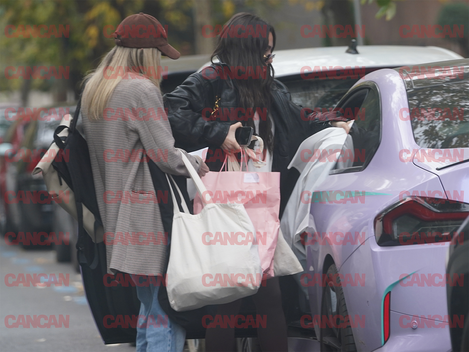 Cele două încearcă să pună niște bagaje în mașină