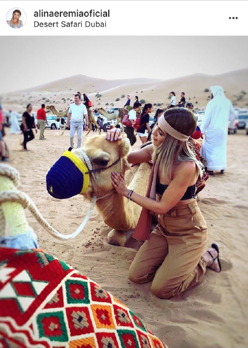 În concediu, artista s-a pozat, fericită, lângă o cămilă
