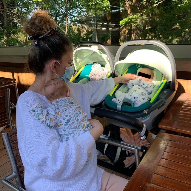 Alina Laufer, cu gemenii în curtea casei