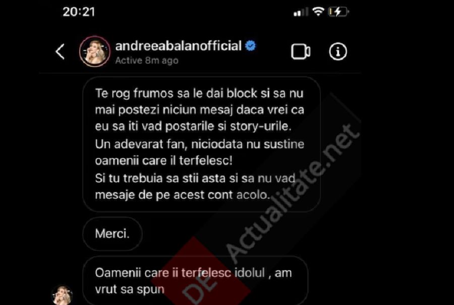 Andreea Bălan, ieșire bizar-agresivă la adresa unui fan care o urmărește și pe Viviana Sposub, pe Instagram: „Am crezut că ai probleme psihice”. FOTO