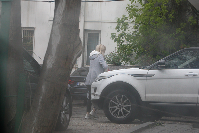 Andreea Bălan a ocolit mașina și este aproape de intrare în Antenă