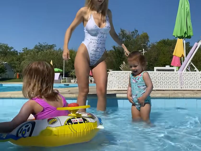 Andreea Bălan, gafă în timp ce se afla la piscină cu fiicele. I s-au văzut zonele intime prin costumul de baie alb și decupat | VIDEO