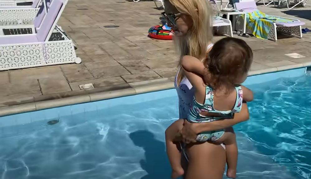 Andreea Bălan, gafă în timp ce se afla la piscină cu fiicele. I s-au văzut zonele intime prin costumul de baie alb și decupat | VIDEO