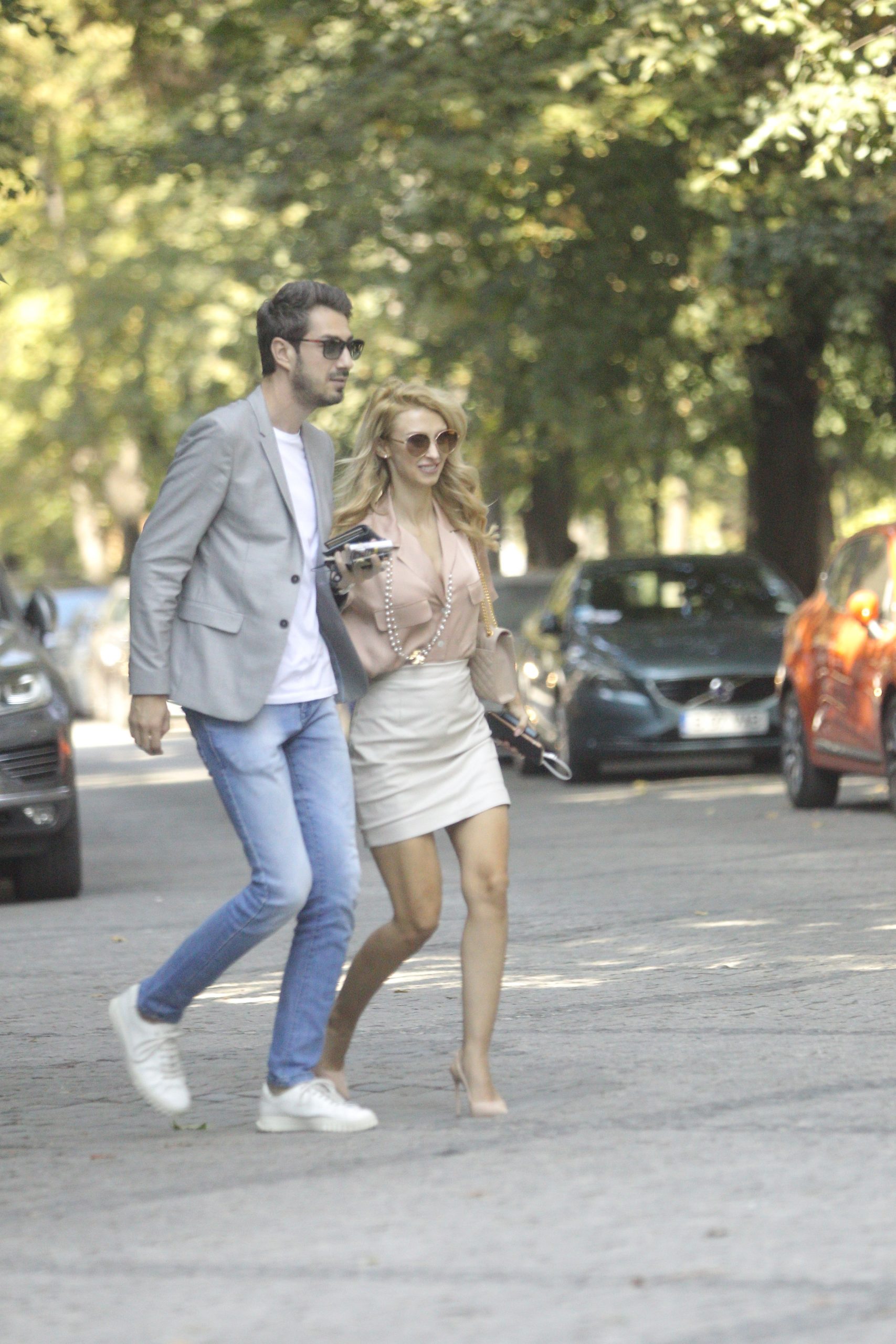 Andreea Bălan și Tiberiu Argint se îndreaptă către mașină