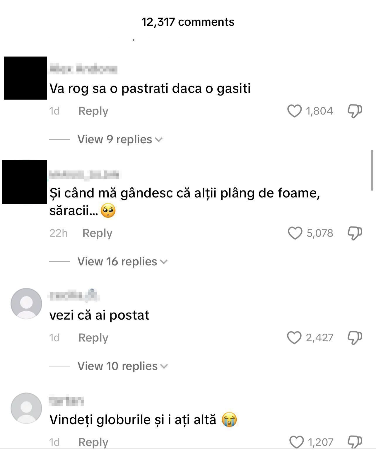 Comentarii la postarea Andreei Bostănică. Sursă: TikTok