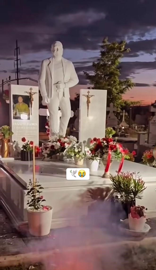 Aroganță la mormântul interlopului Florin Tamba, zis ”Buză”. Familia i-a făcut statuie și cavou din marmură albă
