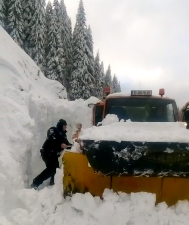 VIDEO. Alertă în zona montană din Dâmbovița. Două avalanșe au surprins utilajele de deszăpezire