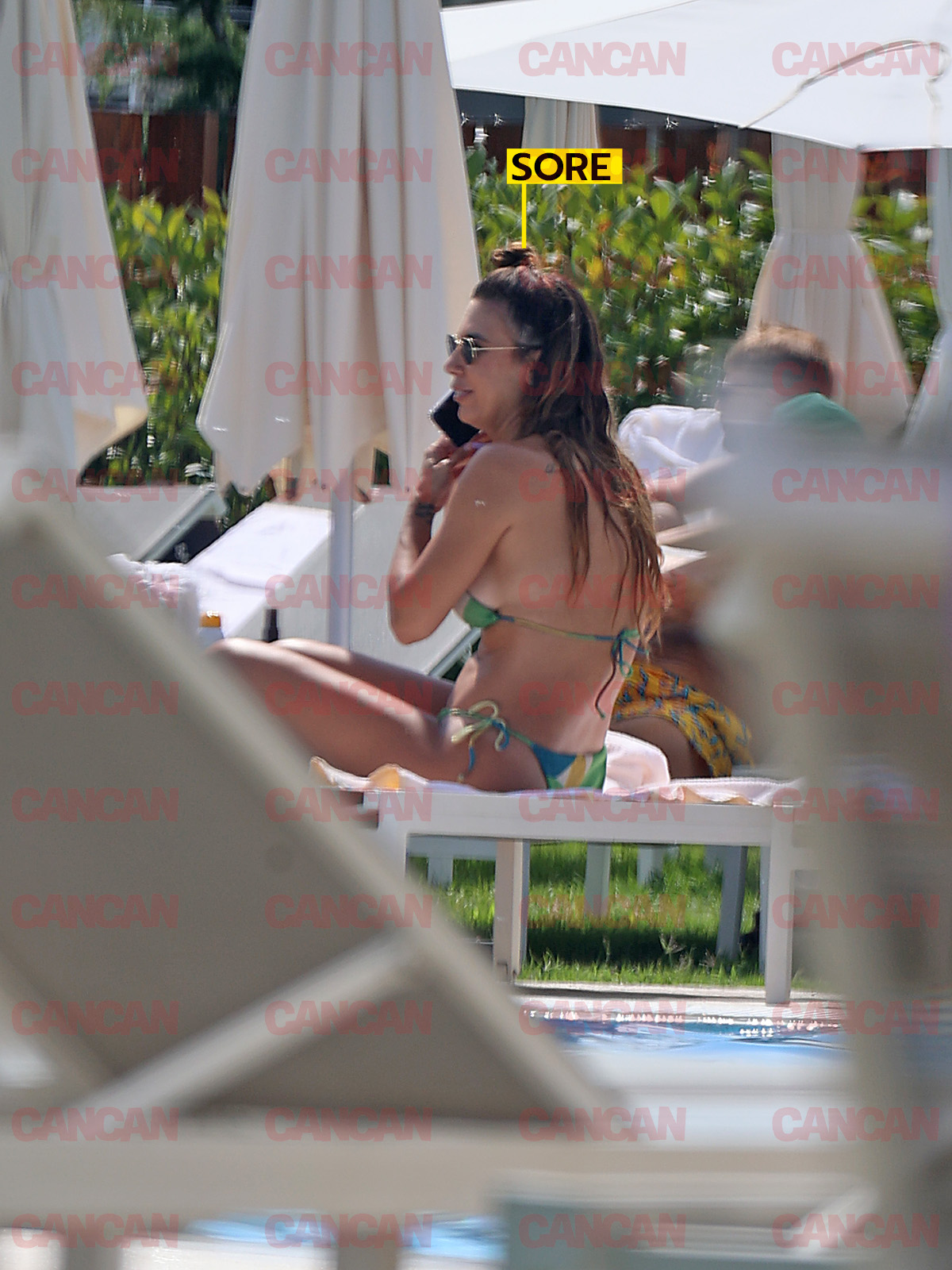 Sore a vorbit la telefon timp de minute bune, pe marginea piscinei (Foto: CANCAN.RO)