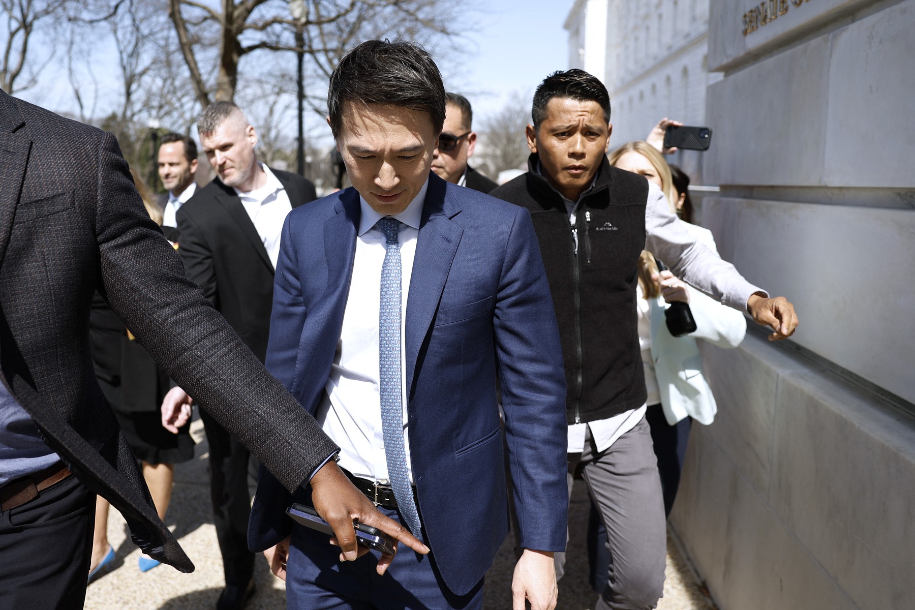 Shou Zi Chew, CEO al TikTok, pleacă din clădirea Senatului după ce s-a întâlnit cu senatorul John Fetterman (D-PA) pe 14 martie 2024 la Washington, DC. Foto: Profimedia