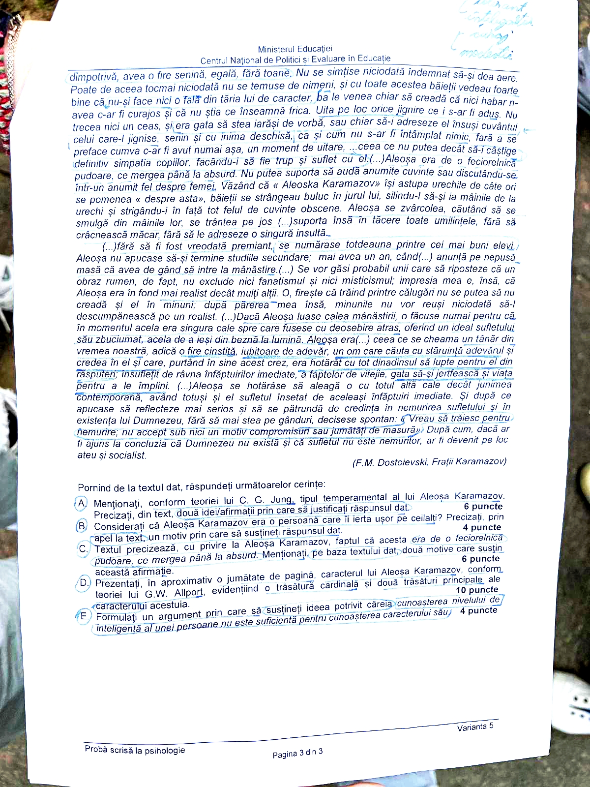 Subiectele la Psihologie (partea III)