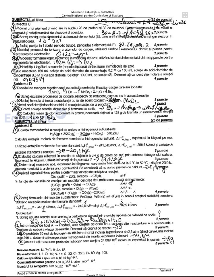 Subiect chimie/ Sursa foto: Edupedu.ro