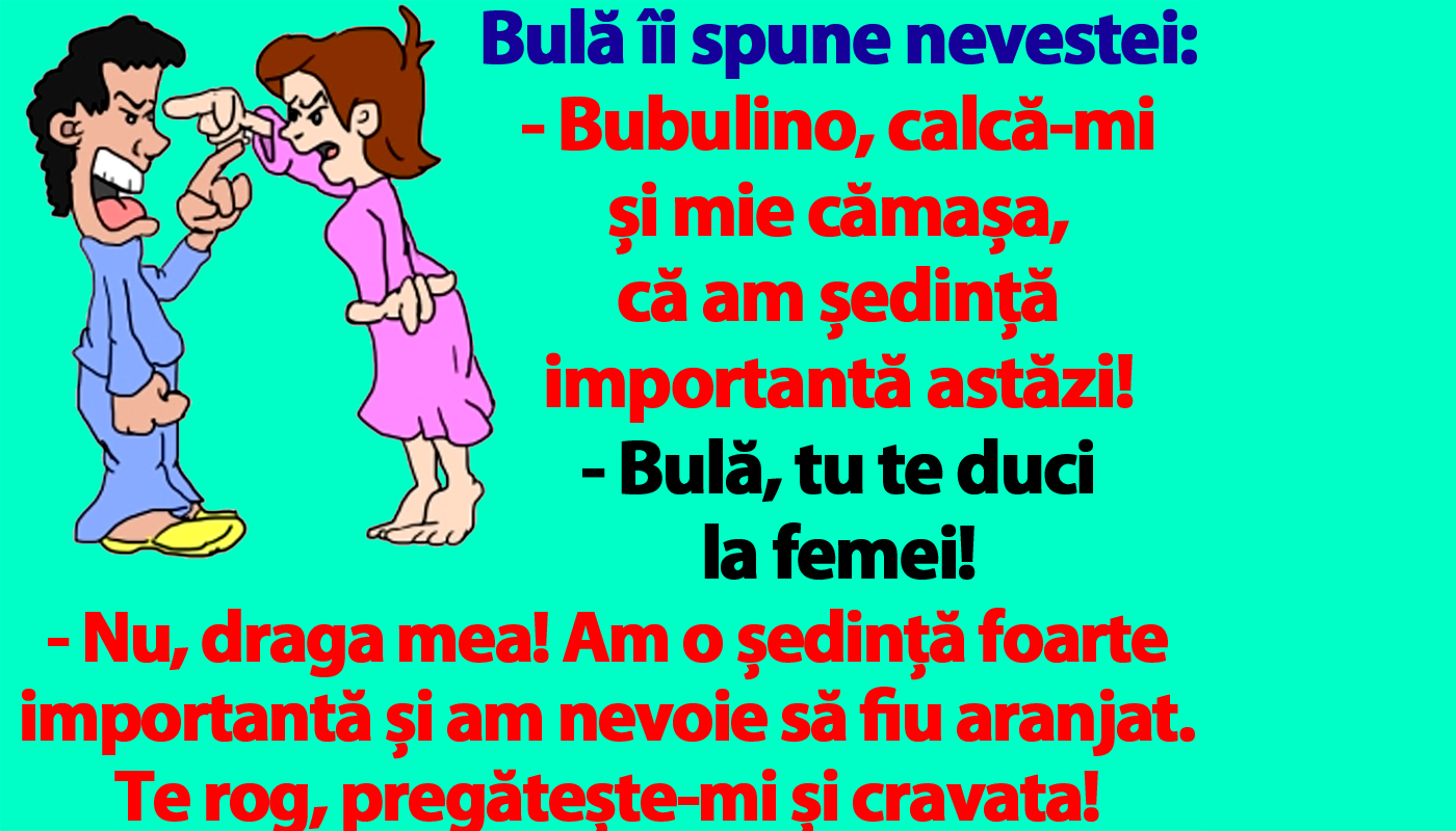 BANC | Bulă îi spune nevestei: „Bubulino, calcă-mi și mie cămașa, că am ședință importantă astăzi!”