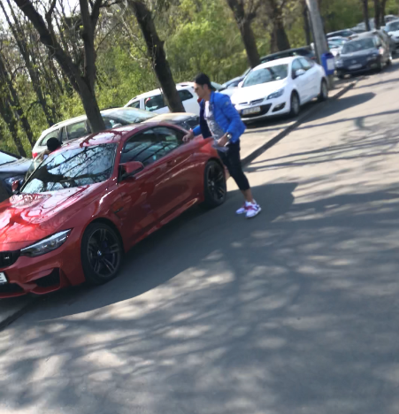 Cântărețul conduce o mașină roșie foarte puternică