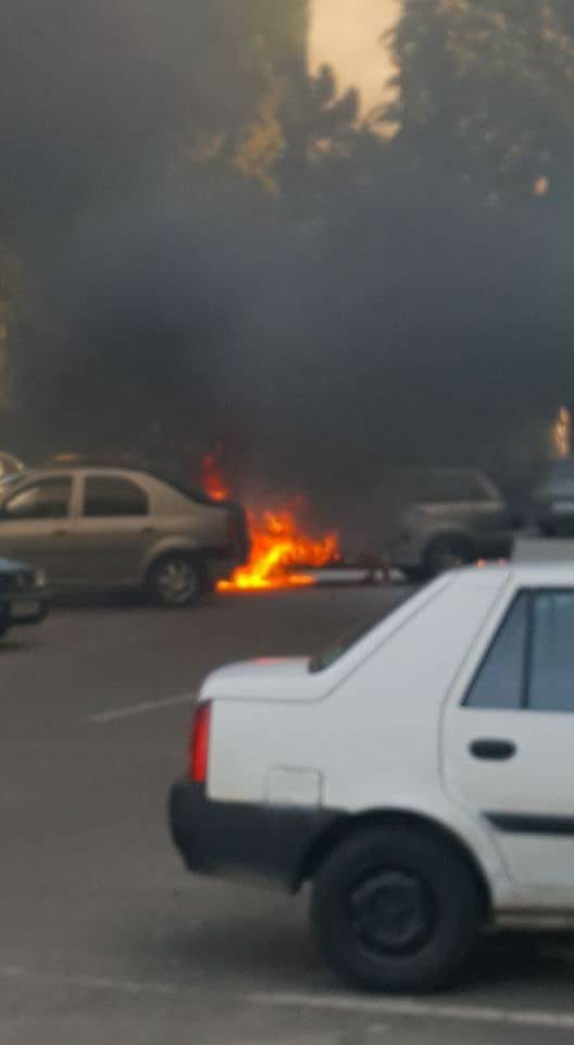 Bărbat rănit într-o parcare din Pitești, în timp ce încerca să mute o mașină care ardea
