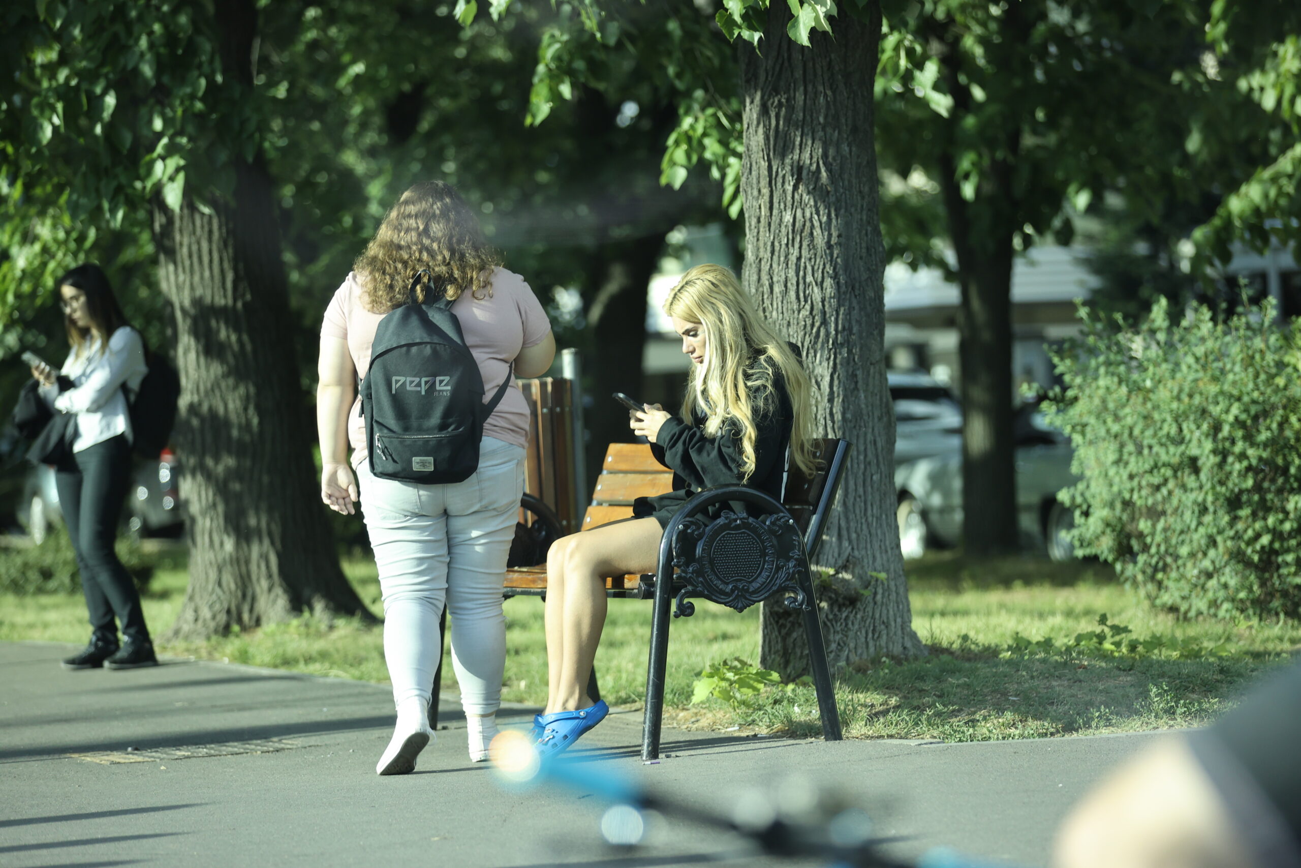 Bia Khalifa butonează telefonul, lângă prietena ei, în speranța că va "agăța" un Uber (Foto: CANCAN.RO)