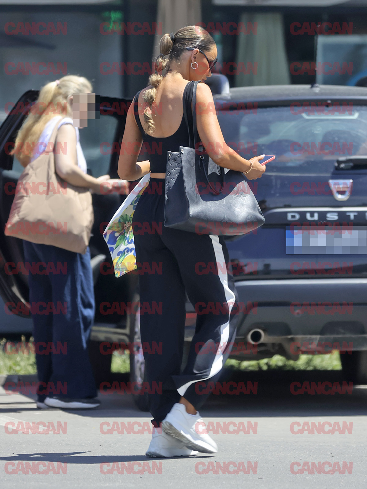 Iubita lui Gabi Bădălău s-a întors la mașină după plasă, apoi a plecat către Jysk (Foto: CANCAN.RO)