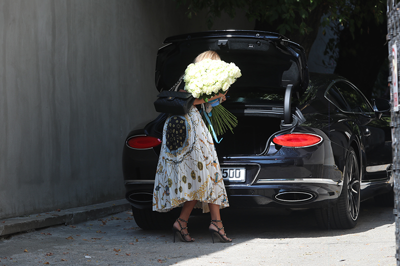 Bianca Drăgușanu are un buchet mare de flori, pe care l-a ținut în portbagaj
