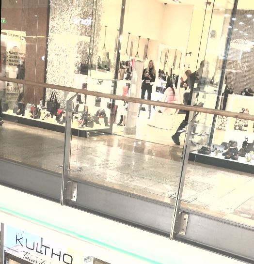 Bianca pare să probeze o pereche de pantofi