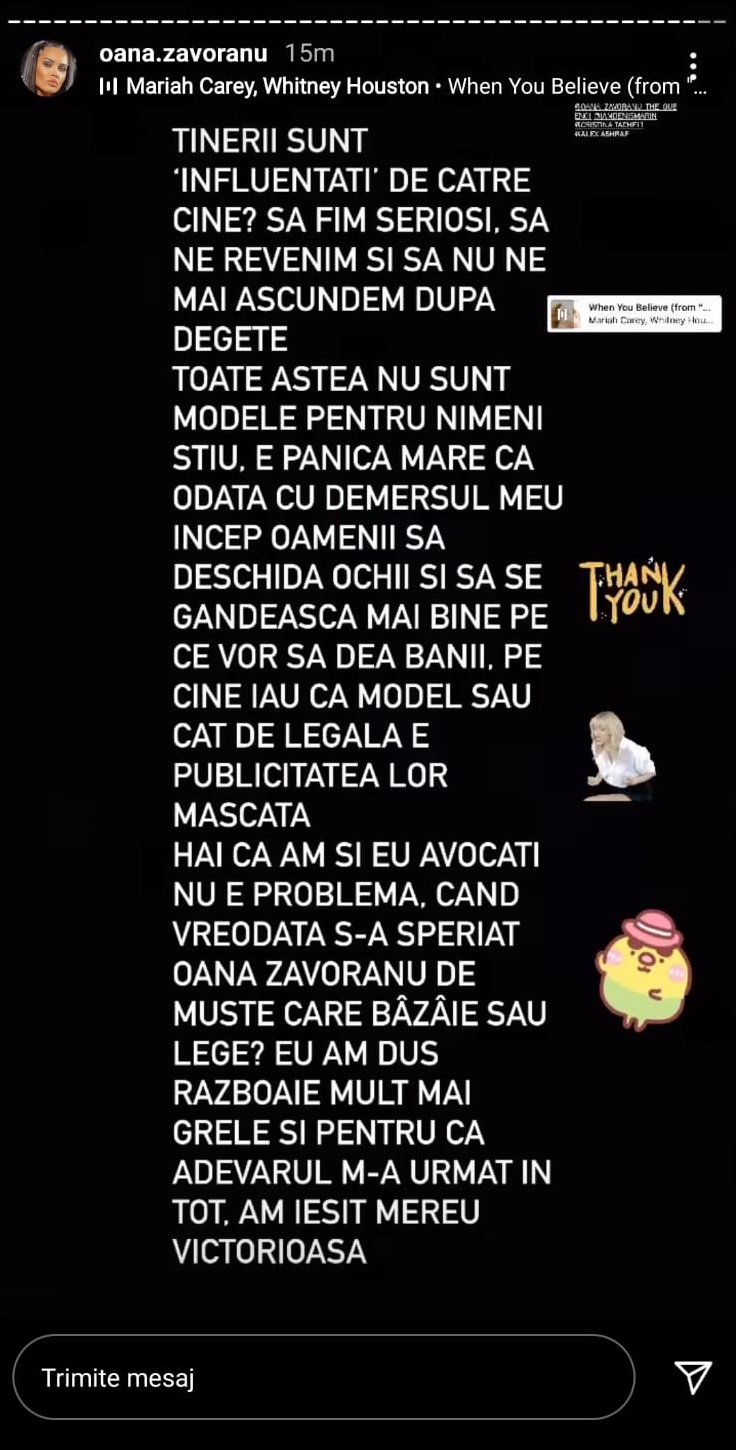 Oana Zăvoranu continuă lupta cu "influencerele"