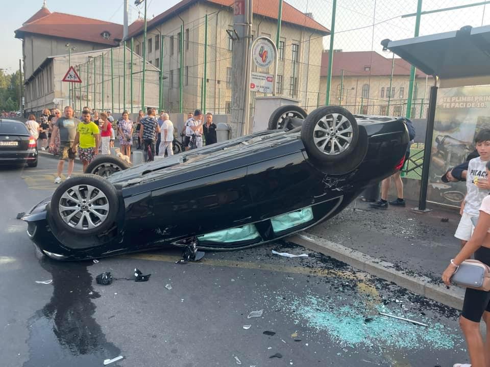 Breaking news! Accident grav în București! O mașină s-a răsturnat în cartierul Tineretului