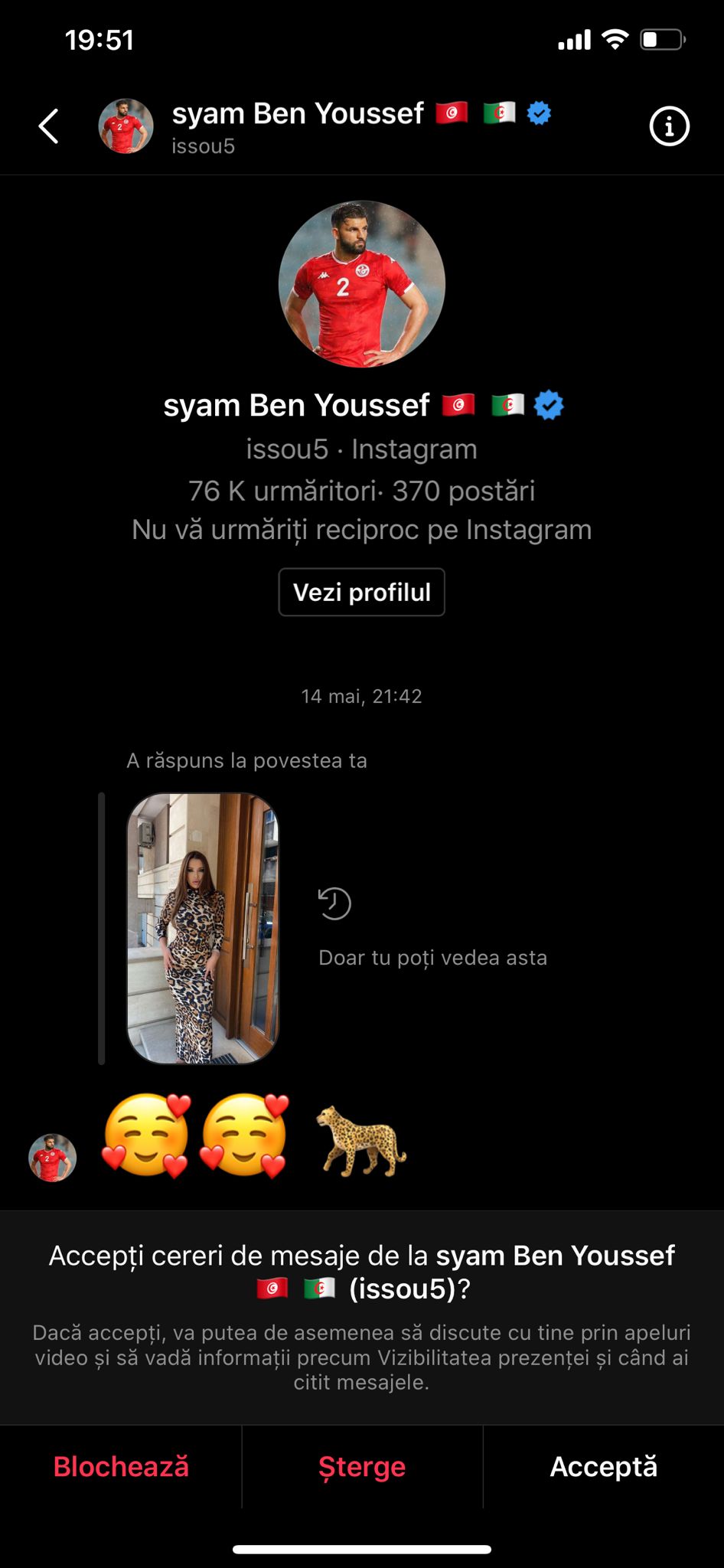 Mesaj primit de Andra Volos de la Syam Ben Youssef, fost fotbalist la Astra și CFR Cluj