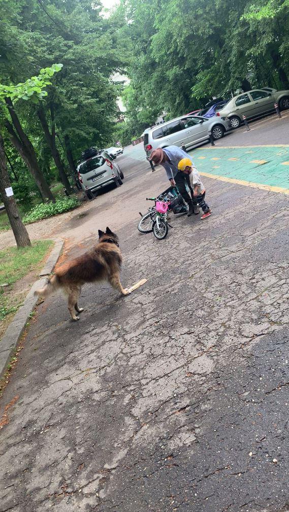 Chef Foa își ajută băiețelul să se ridice, după ce a căzut cu bicicleta (Foto: CANCAN.RO)