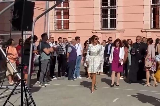 Carmen Iohannis a atras toate privirile în prima zi de școală/ sursă foto: captură video Mesageruldesibiu