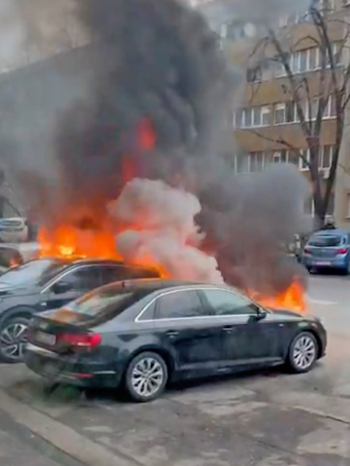 Mașina electrică care a produs tragedia, învăluită de flăcări